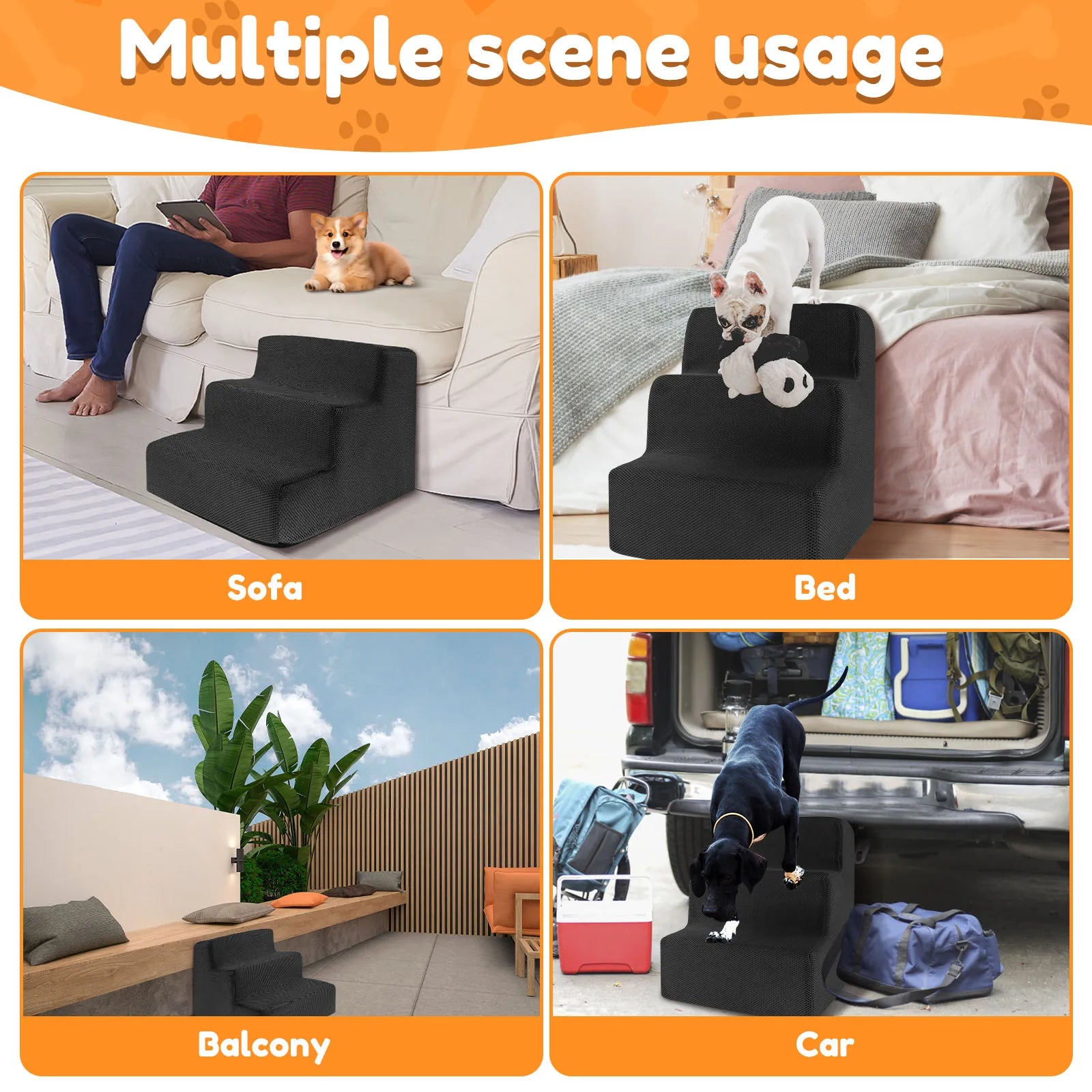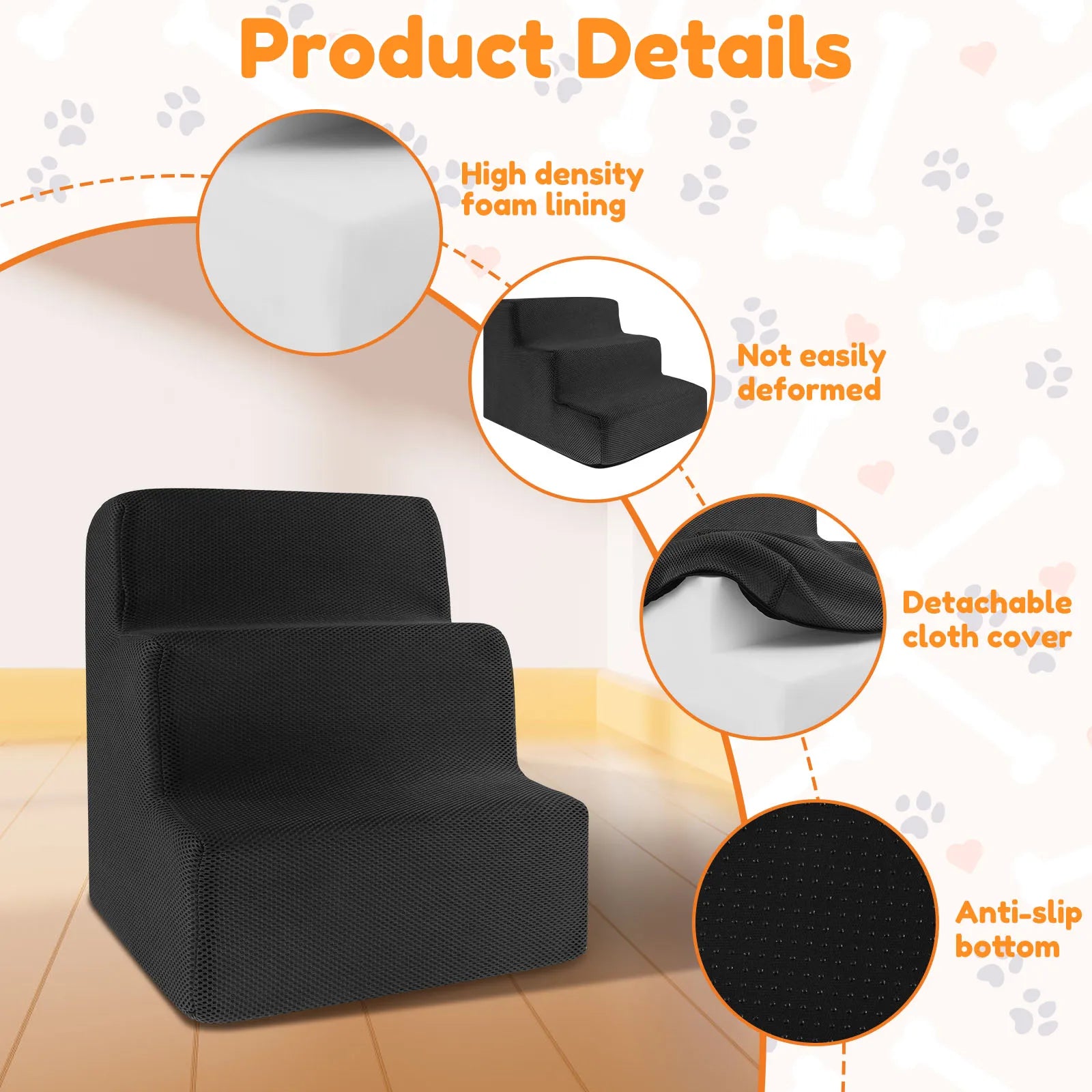 3 Step Pet Stairs High Density Soft Foam Small Dog Ramp Ladder Stair Removable and Washable Non-Slip Dog/Cat Steps Pet Supplies