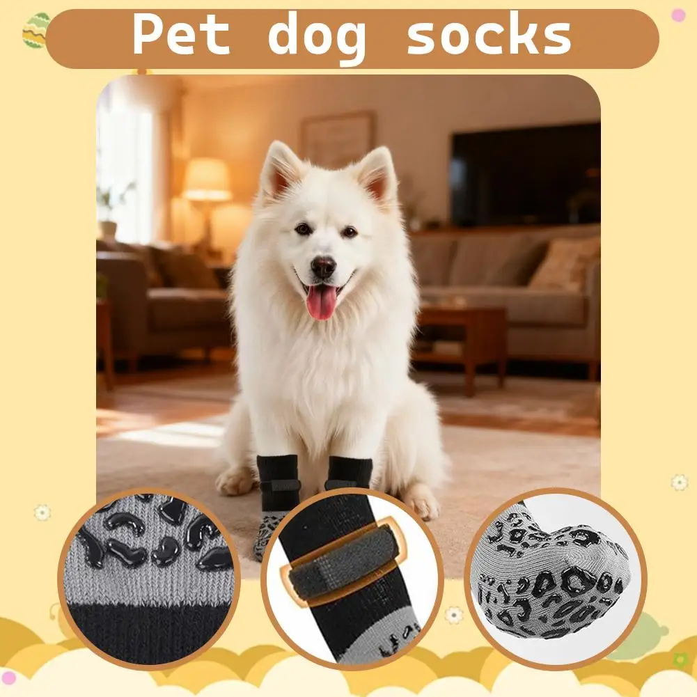 4Pcs/set Anti Slip Dog Socks with Straps Traction Control for Indoor on Hardwood Floor Wear Pet Paw Protector for Small Dogs Pet