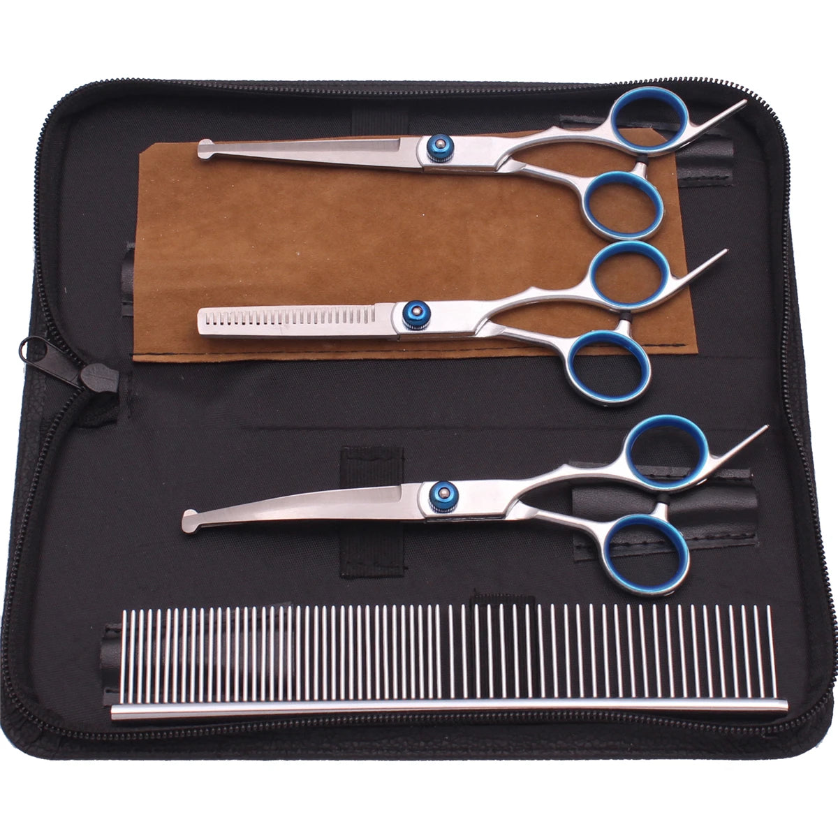 6.0'' Pet Grooming Safety Scissors Hair Cutting Curved Thinning Comb Shears Sets For Home Dogs Cats Salon C3066