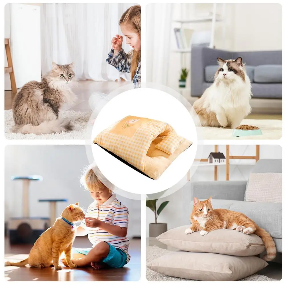 Cat Sleeping Bag Semi-Enclosed Puppy Kitten Warm Comfortable Bed With Pillow Plaid Pet Winter Thickened Plush Pocket Type Nest