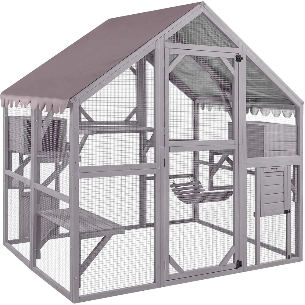 - Walk In Style Catios: Fully open enter door at 59.5" tall allow you to go inside to interact with your cats,make feeding and cleaning easy.The wire mesh provides transparent full sight around the cat for its curiosity and observer nature