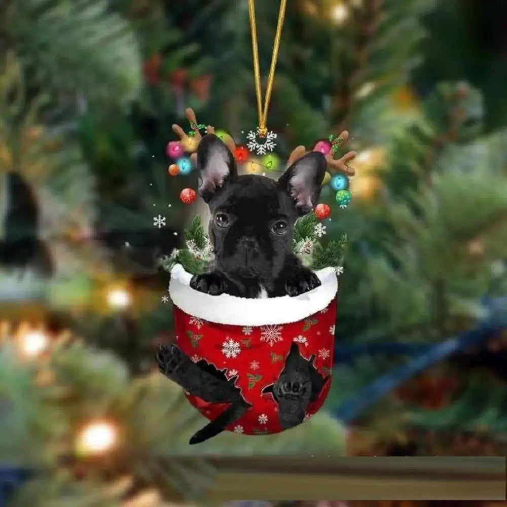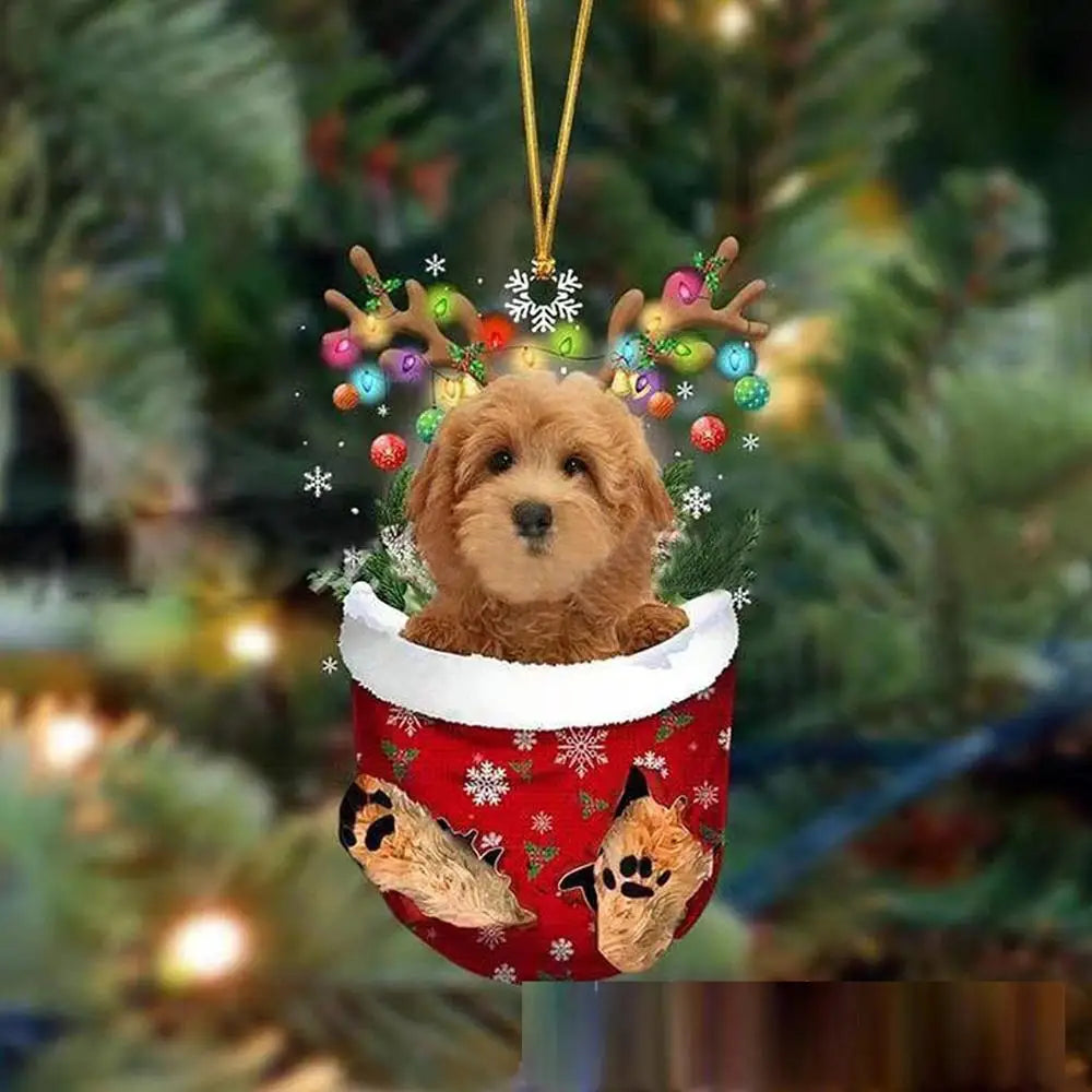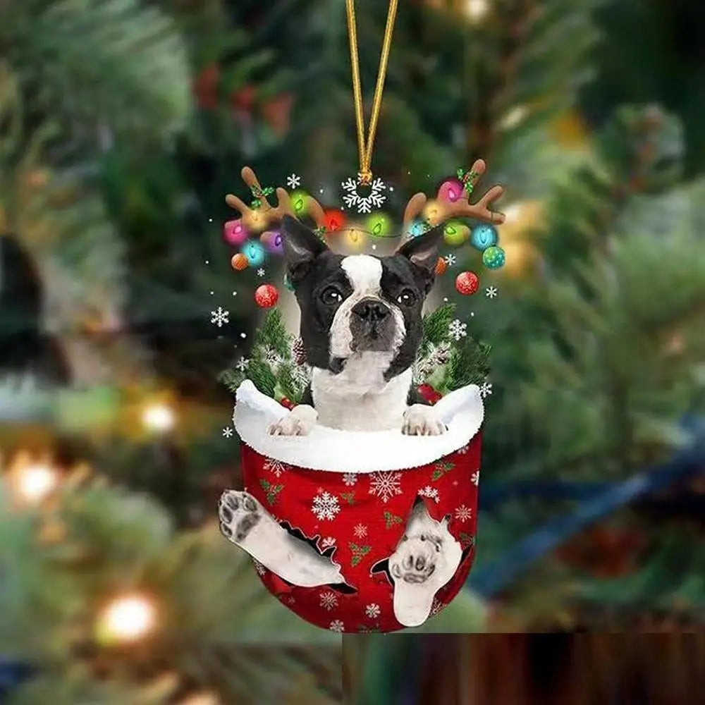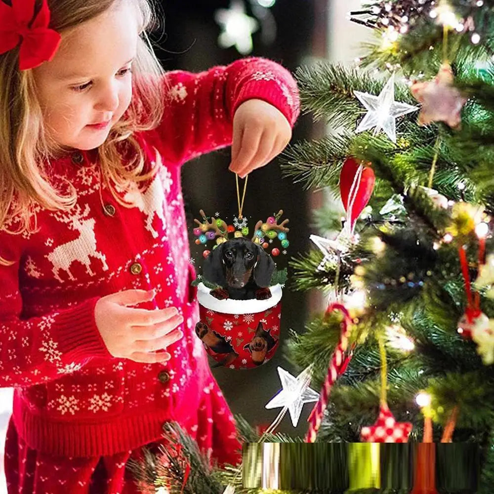 2. This Christmas decoration is a cute dog-shaped ornament that is perfect for hanging on Christmas trees. It is made of material that is waterproof and fade-resistant, allowing for extended use. Its size is suitable for larger Christmas trees or can be used as a car decoration. This decoration can also be given as a Christmas gift to dog lovers.