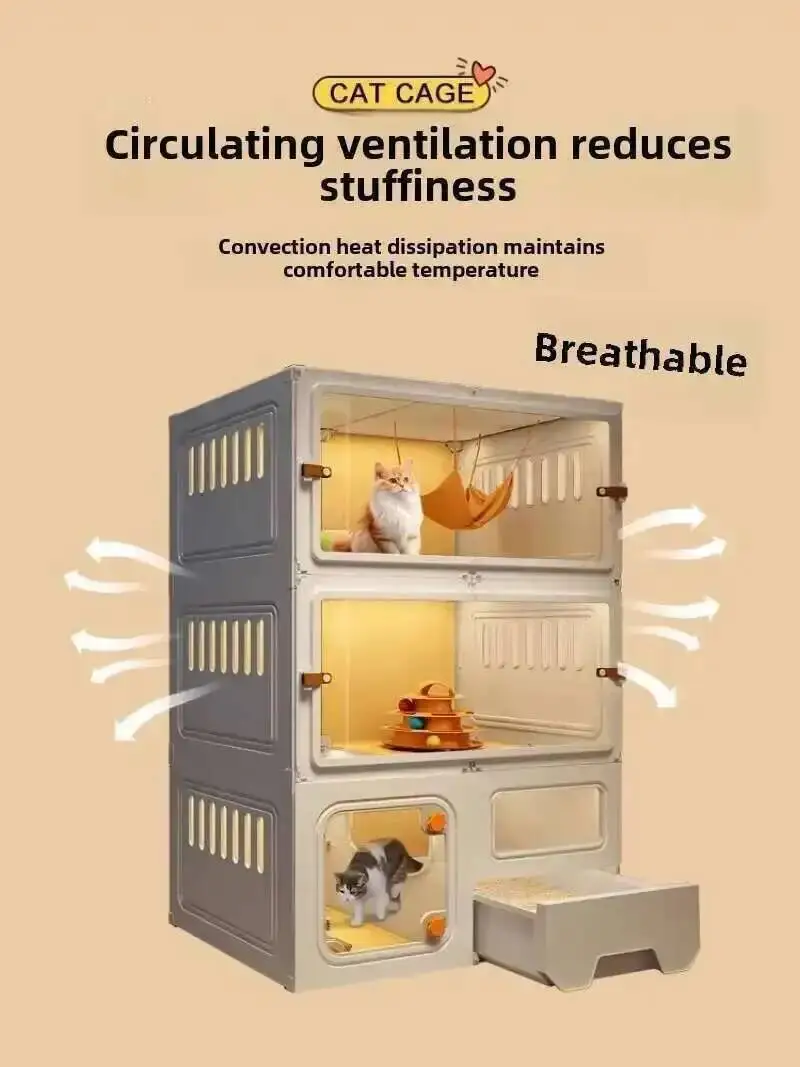 Luxury Cat Cage Cats Litter Box Integrated Cat House Modern Minimalist Large Free Space Household Indoor Cages for Cats