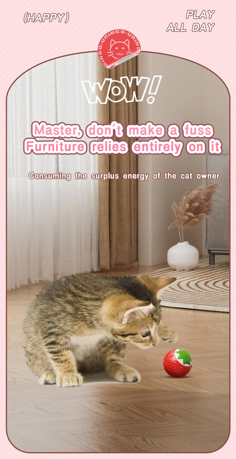 Great grip of our interactive cat toys - Built with stronger power inside, make ball running, swinging, slipping easily on floor, or carpet. it has no problem transitioning from tile to thick wool rugs.